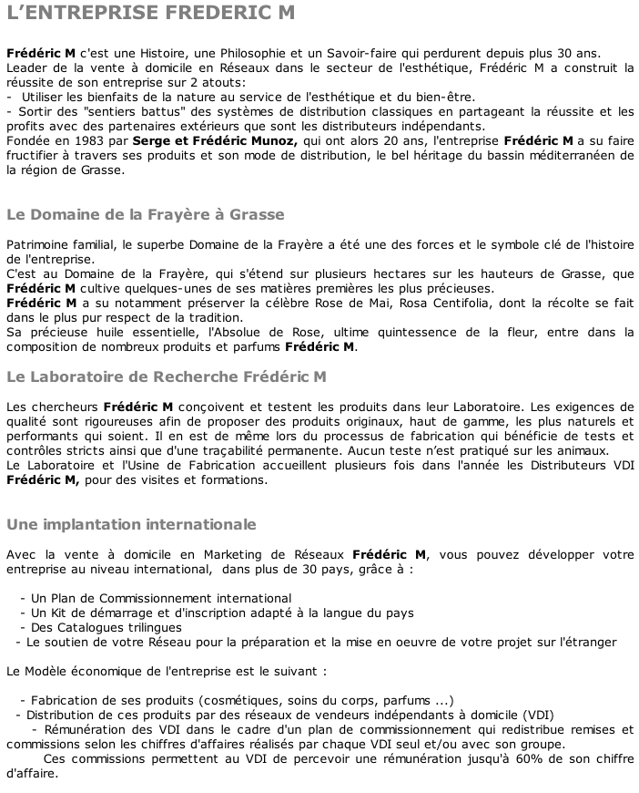 REMUNERATION FREDERIC M COSMETIQUE PARFUMS COMPLEMENTS ALIMENTAIRES ALOE-VERA BIJOUX